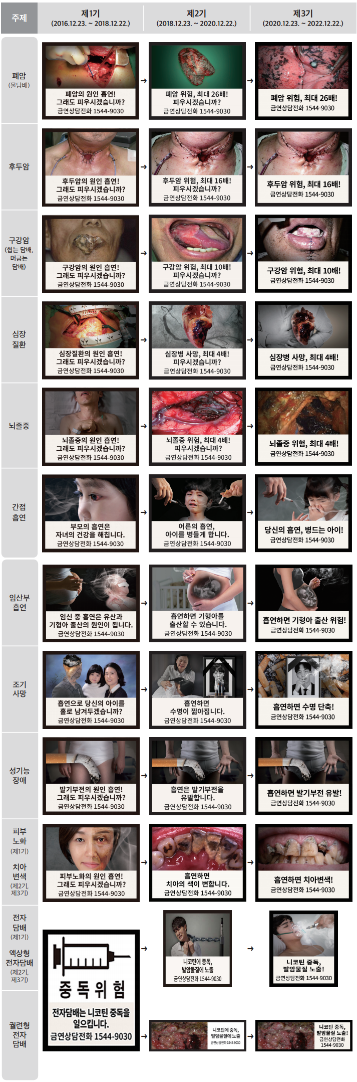 높이기 위해 보다 간결하고 명확하게 표현했다. 제1기부터 제3기까지의 담뱃갑 경고