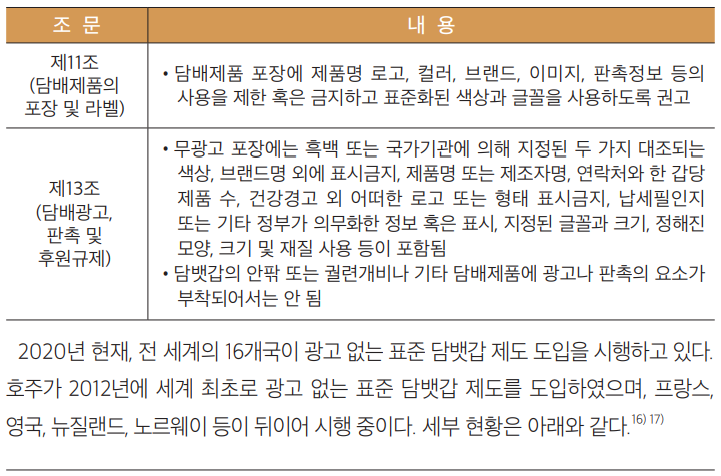 | 표 2 | 광고 없는 표준 담뱃갑 관련 FCTC 가이드라인