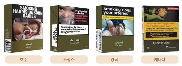 | 그림 2 | 호주·프랑스·영국·캐나다의 광고 없는 표준 담뱃갑