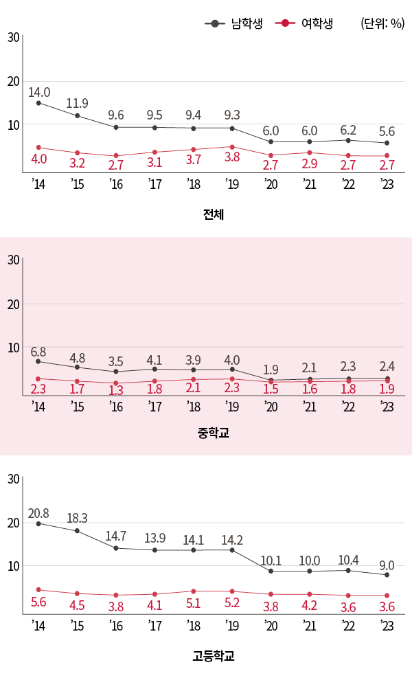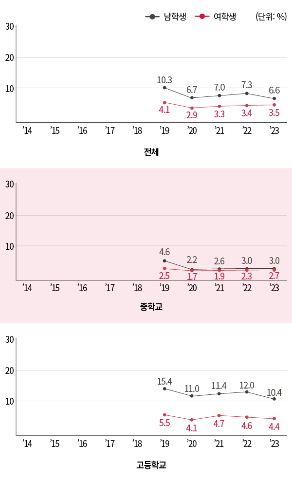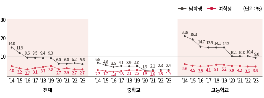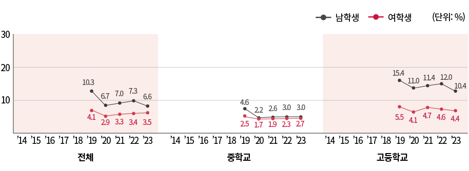- ※ 자료: 질병관리청. (2024). 제19차(2023년) 청소년건강행태조사.