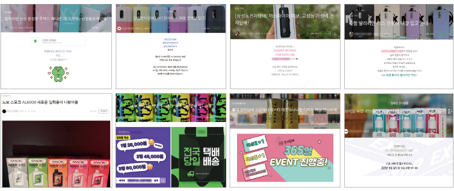 우리나라 또한 이와 같은 온라인 플랫폼을 활용하여 인터넷상에서 담배제품을 판매·홍보하는 사례가 종종 발생한다. 지난 2023년 한국건강증진개발원 국가금연지원센터가 인터넷상 담배 불법 판매, 대리구매, 담배·흡연 전용 기구 광고 실태 등을 모니터링한 결과에 따르면, 담배 관련 키워드로 검색된 총 16,950개의 페이지에서 총 1,956건
