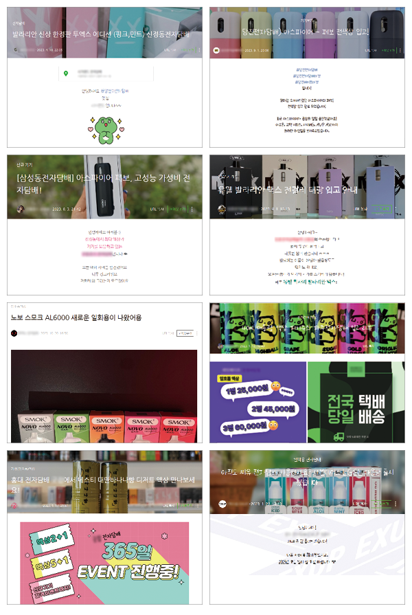 이처럼 연령에 상관없이 누구나 액상형 전자담배 등의 판매·광고 게시물에 접근할 수 있고, 포털사이트와 SNS를 통해 담배와 관련된 추천이나 후기 글 등이 노출되고 있는 현재의 상황은 청소년의 담배제품 사용 시작을 유도할 수 있다는 점에서 심각한 사회적 문제가 될 수 있다.