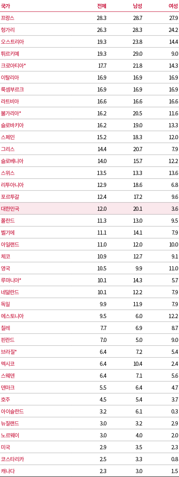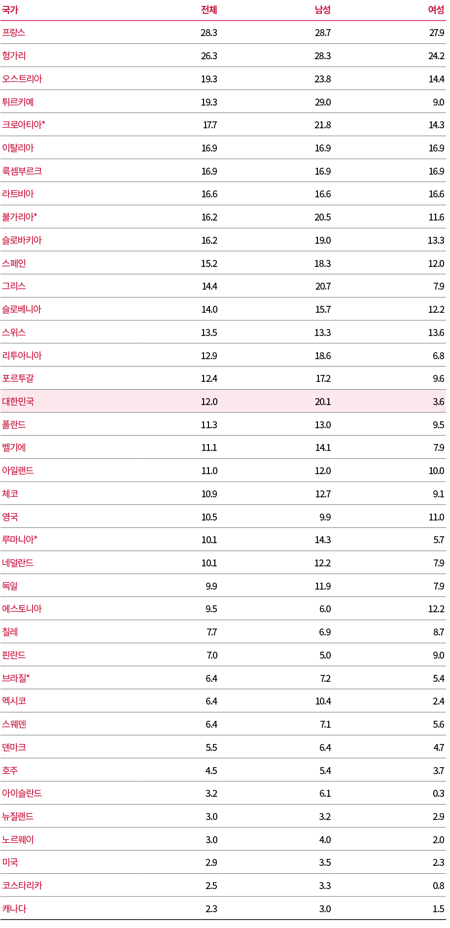 [표 1] OECD 국가별 15-24세 매일 흡연율
