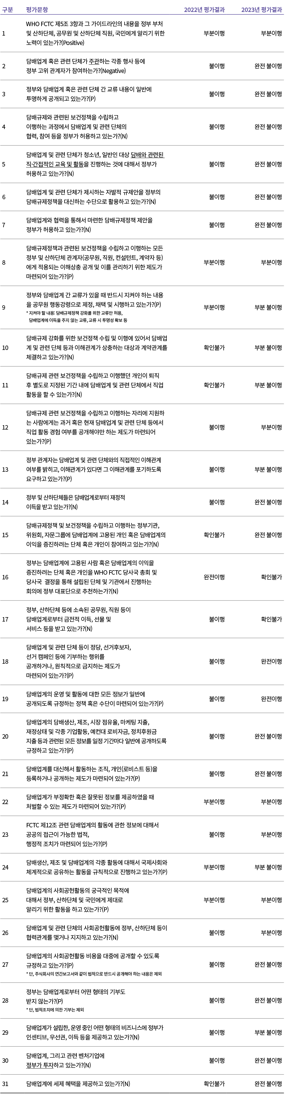 나. 2023년 WHO FCTC 제5조 3항 이행현황 평가